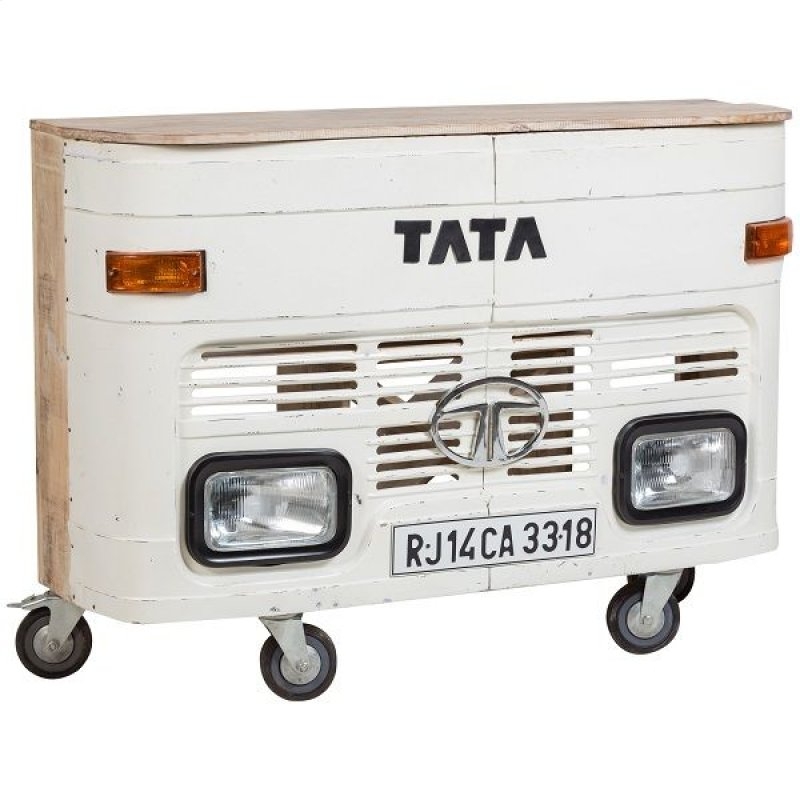 Indian White Finish Truck Bar Counter With Recycle Wooden Top