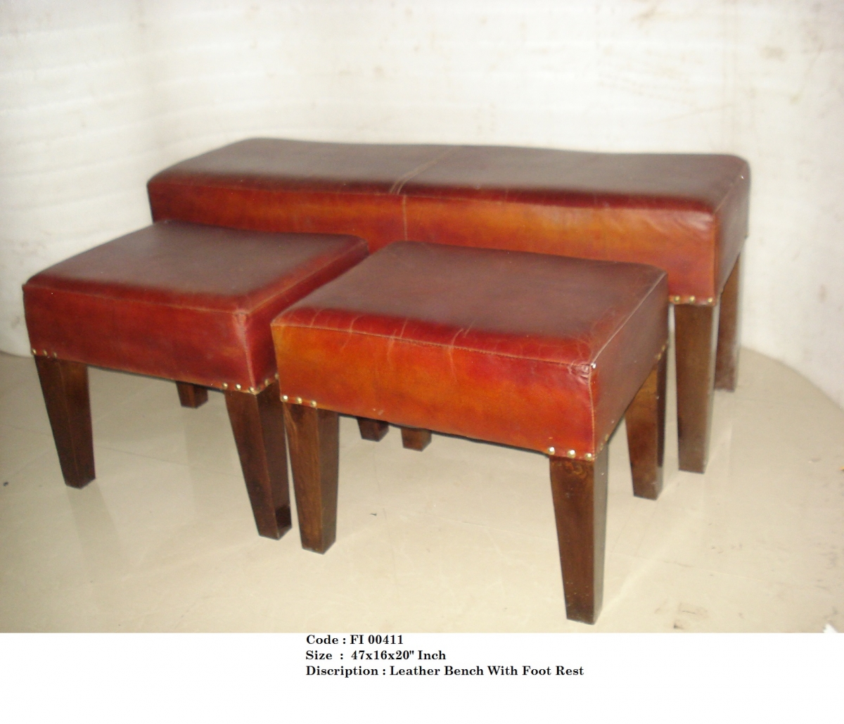 Antique Finish Leather Bench Set